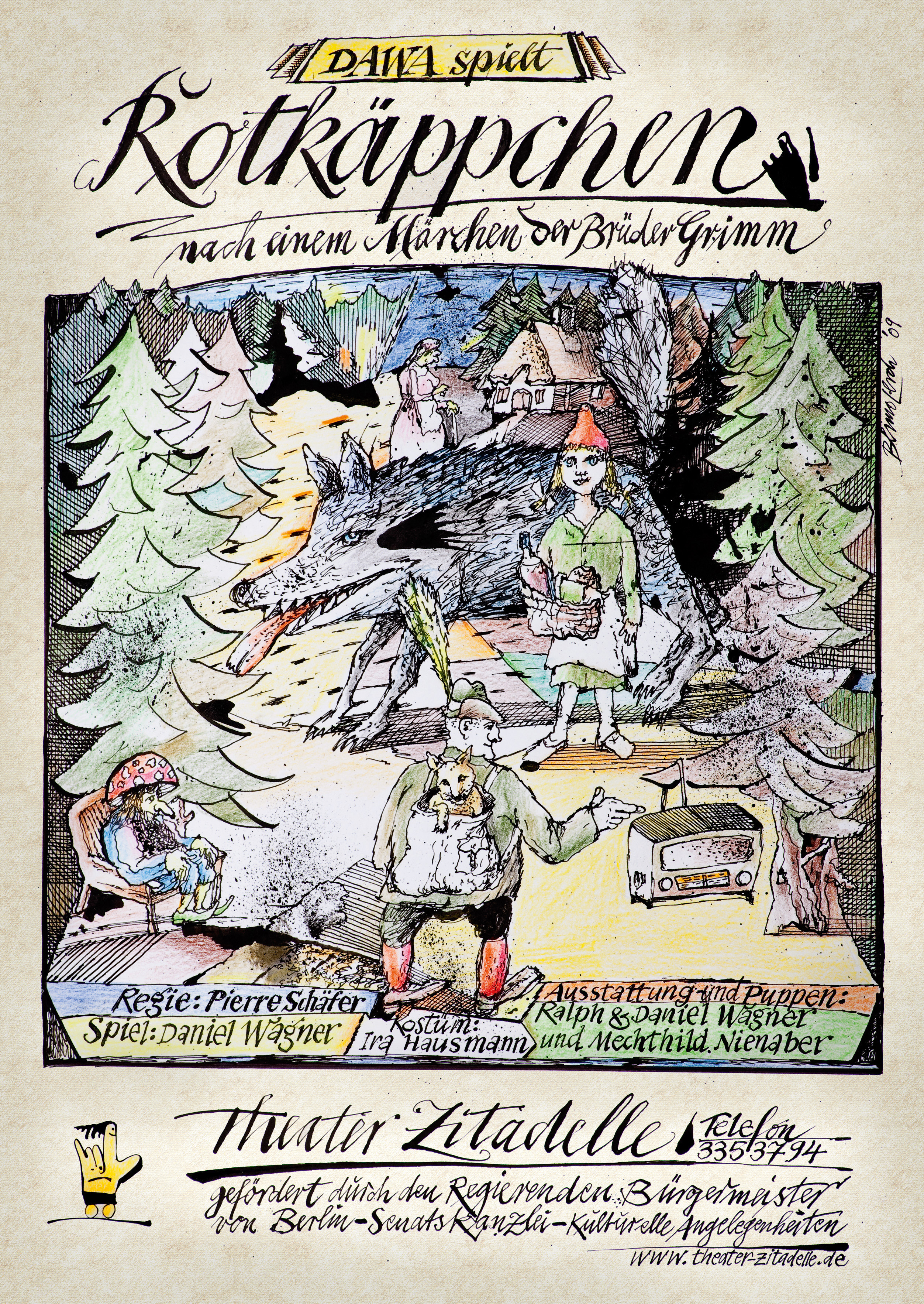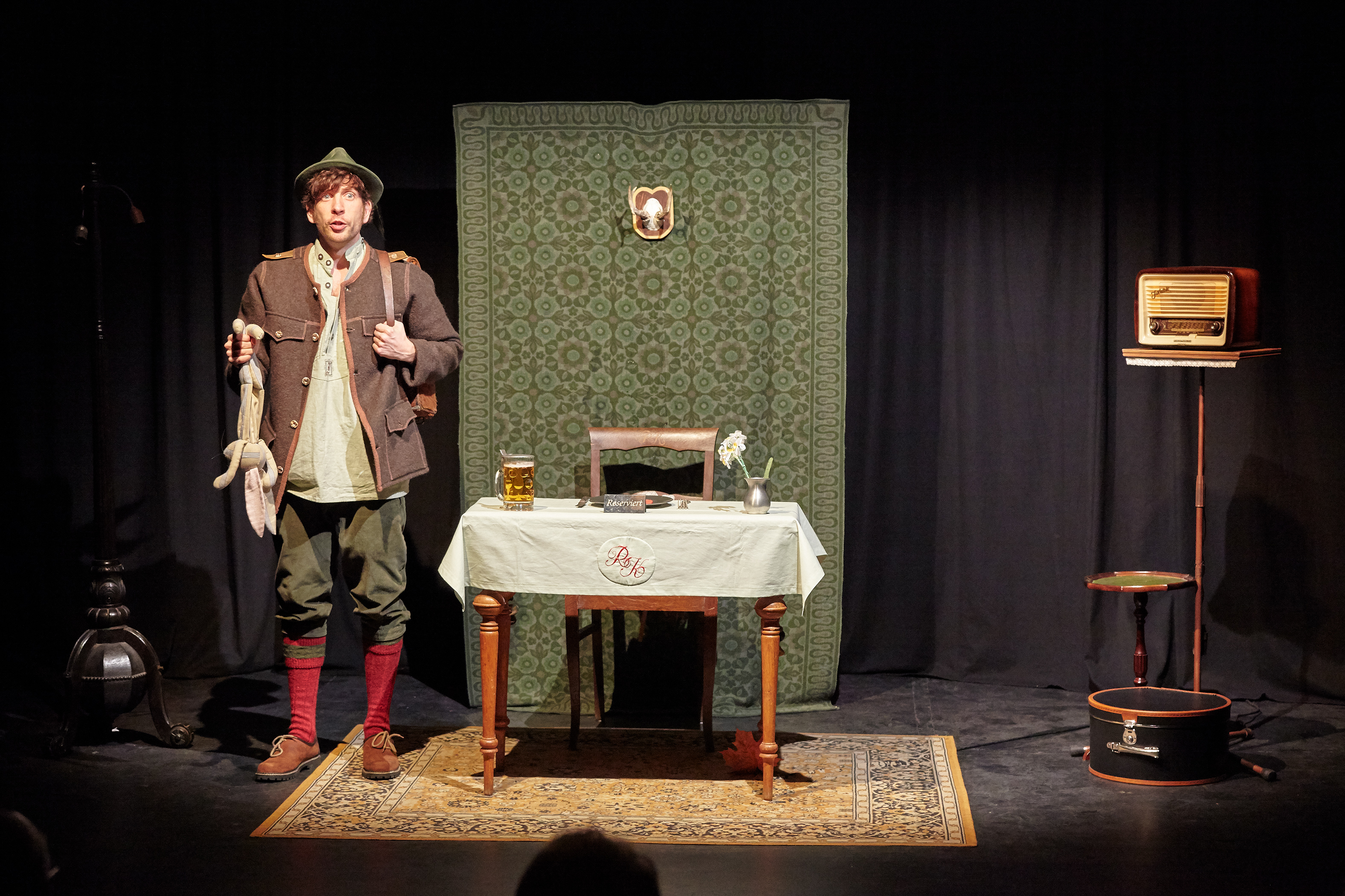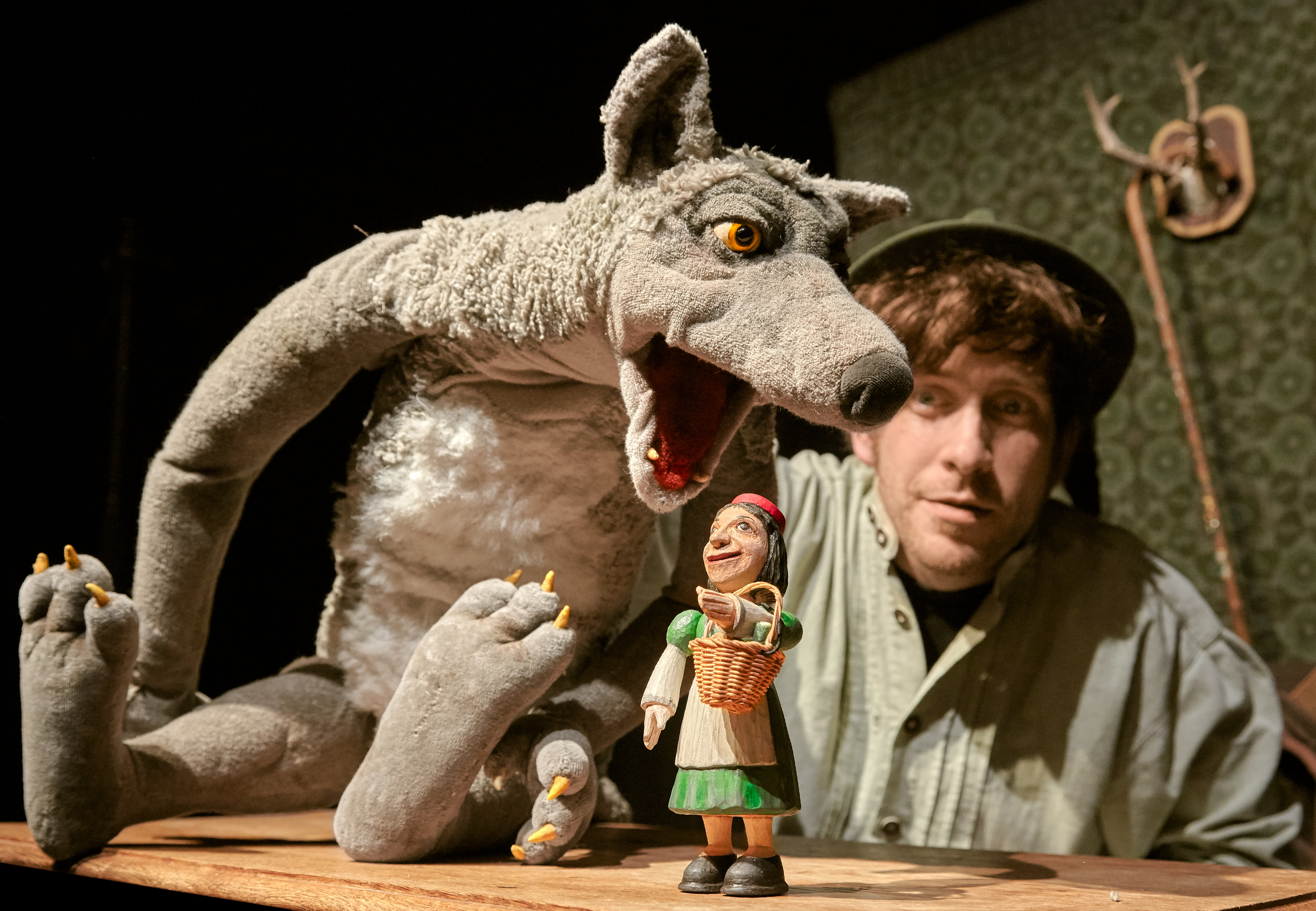 Daniel Wagner spielt den Jäger, der diese unglaubliche Geschichte von einem Mädchen mit einer roten Kappe erzählt.